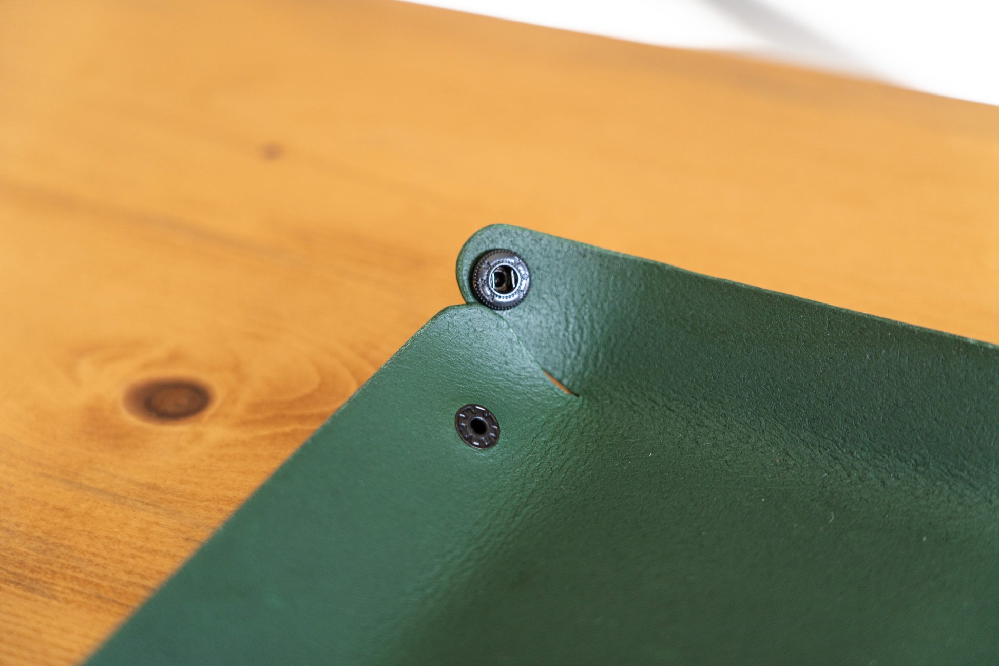 Handcrafted from the finest full-grain leather with corner push buttons.